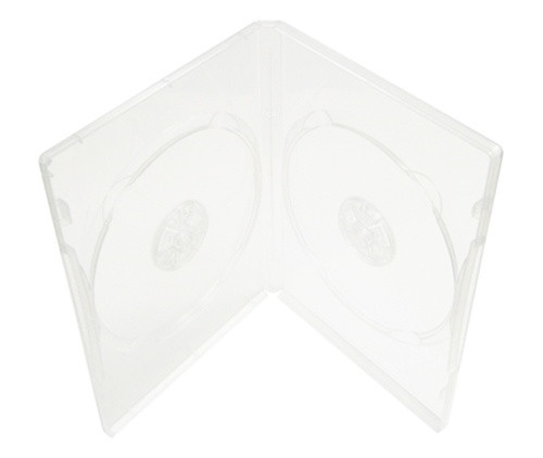 The Double DVD Case allows you to safely package 2 standard size DVDs or CDs. Made of high quality plastic this Double DVD Case product features a push button hub for easy media removal and a clear acetate outer cover that allows for case wrap insert. Both attractive and durable the Double DVD Case is a great packaging solution.